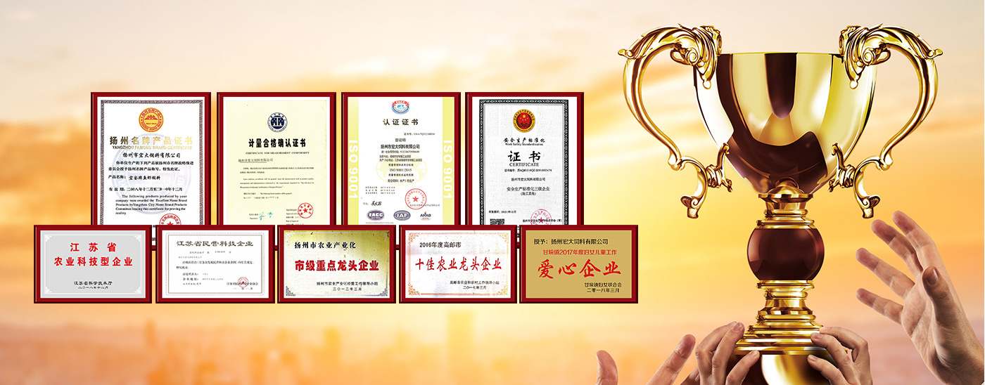 先后榮獲江蘇省飼料質量合格產品、江蘇省名牌產品、揚州市消費者滿意商品、揚州市質量計量信得過產品等稱號。